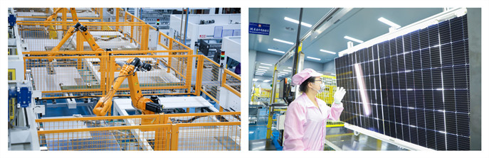 陽光能源悅陽生產(chǎn)基地坐落于鹽城建湖,占地面積約100余畝(仍在擴建中),先進產(chǎn)能突破90%,產(chǎn)品基本覆蓋市場主流需求,兼容M10/G12等多種尺寸規(guī)格,N型 TOPCon和HJT技術(shù)已可規(guī)?;慨a(chǎn)于組件產(chǎn)品中。