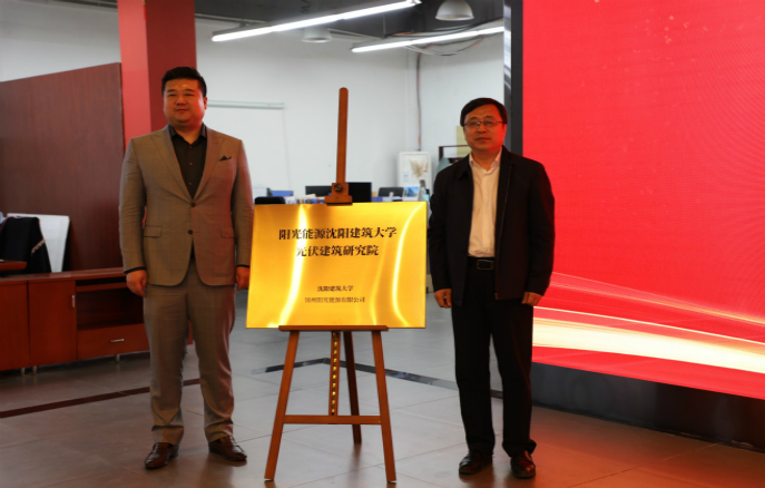 2021年5月14日,錦州陽光能源有限公司&沈陽建筑大學(xué)共建光伏建筑研究院揭牌儀式在遼寧省沈陽建筑大學(xué)順利召開。研究院全稱為“陽光能源沈陽建筑大學(xué)光伏建筑(BIPV)研究院” 沈陽建筑大學(xué)黨委書記董玉寬,黨委副書記、校長閻衛(wèi)東,副校長嚴文復(fù),錦州陽光能源有限公司董事長譚鑫,總經(jīng)理張海,智頂科技總經(jīng)理曹紅彬等雙方多位領(lǐng)導(dǎo)共同見證這一“產(chǎn)、學(xué)、研、創(chuàng)、用”的資源整合和互補優(yōu)勢開啟的激動時刻。