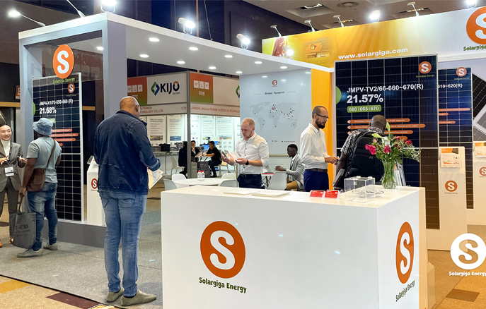 作為全球知名光伏組件制造商,陽光能源在本次大會上向來自全球的業(yè)界翹楚展示了我司的先進技術和創(chuàng)新產品。陽光能源3款Giga-P系列組件面向當地大型地面電站等應用場景,量產功率最高可達670W;此外,陽光能源還展示了1款 Giga-N系列78片雙玻組件產品,以更高效、更前沿的組件特性,俘獲大批觀眾駐足欣賞。展會現(xiàn)場,陽光能源還與當地伙伴共同探討了南非光伏產業(yè)發(fā)展新機遇。